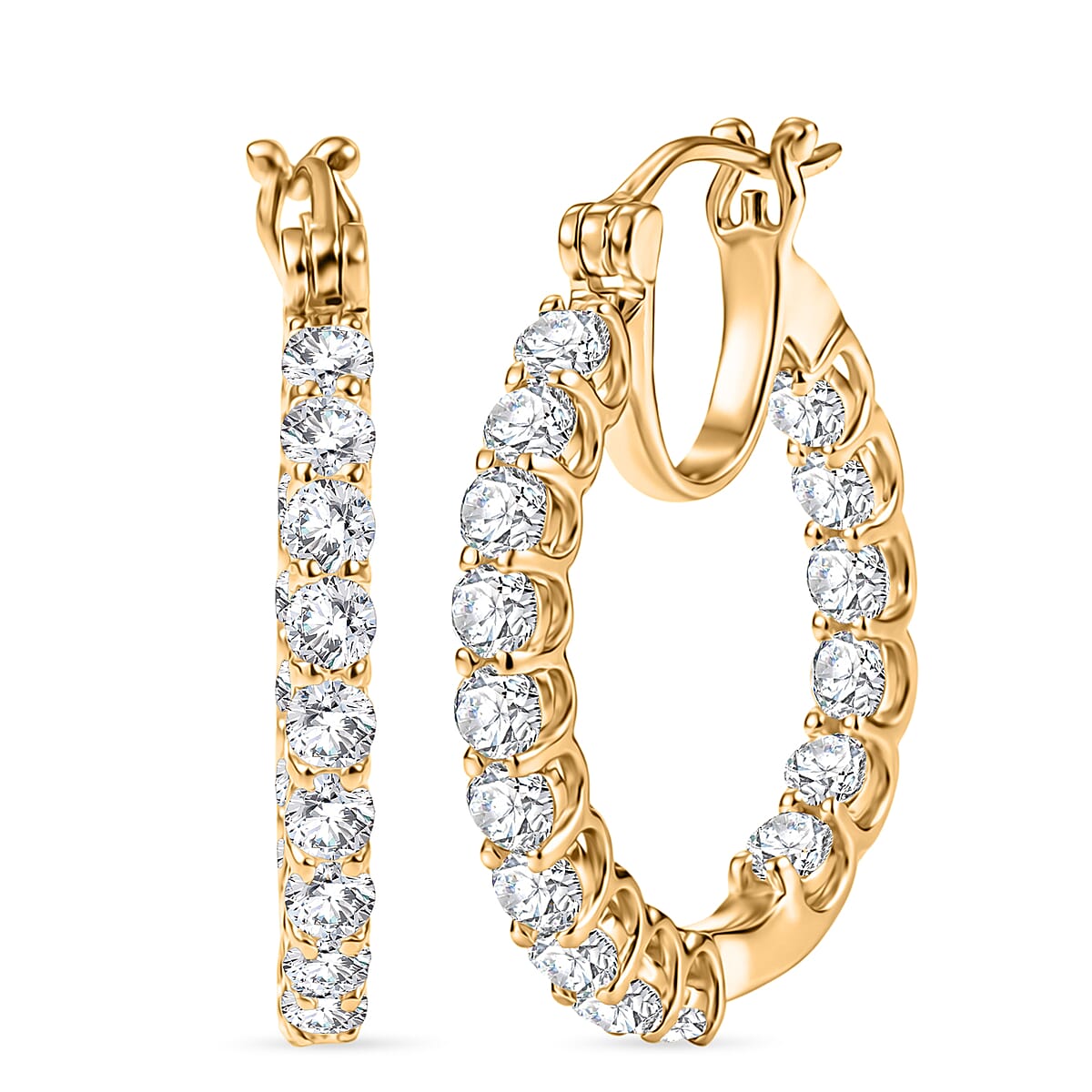 EverTrue Lab Created White Sapphire 3.50 ctw Royal Elegance Hoop Earrings in 18K YG Plated