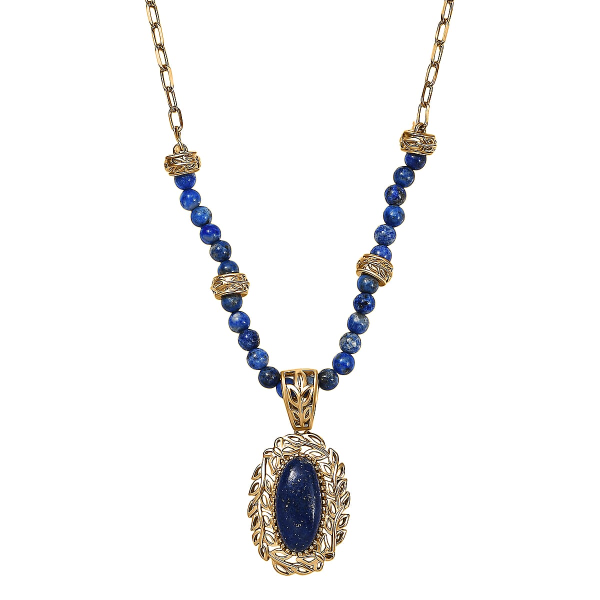 EverTrue Lapis Lazuli 23.40 ctw Tropical Forest Necklace in 18K YG Plated 18-20 Inches