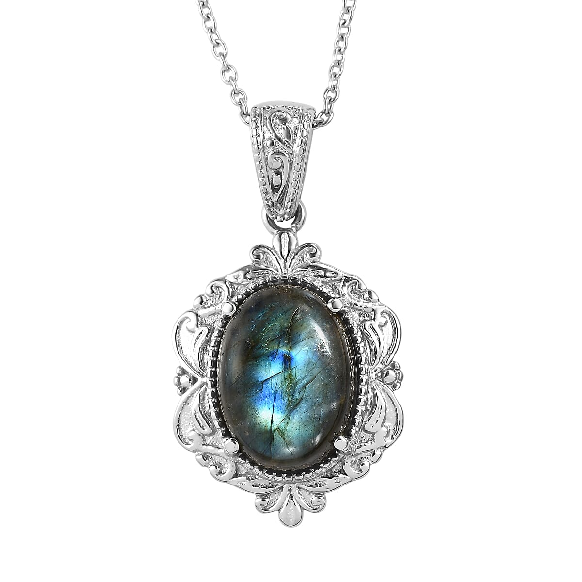 EverTrue Malagasy Labradorite 11.10 ctw Pendant Necklace in Stainless Steel 20 Inches