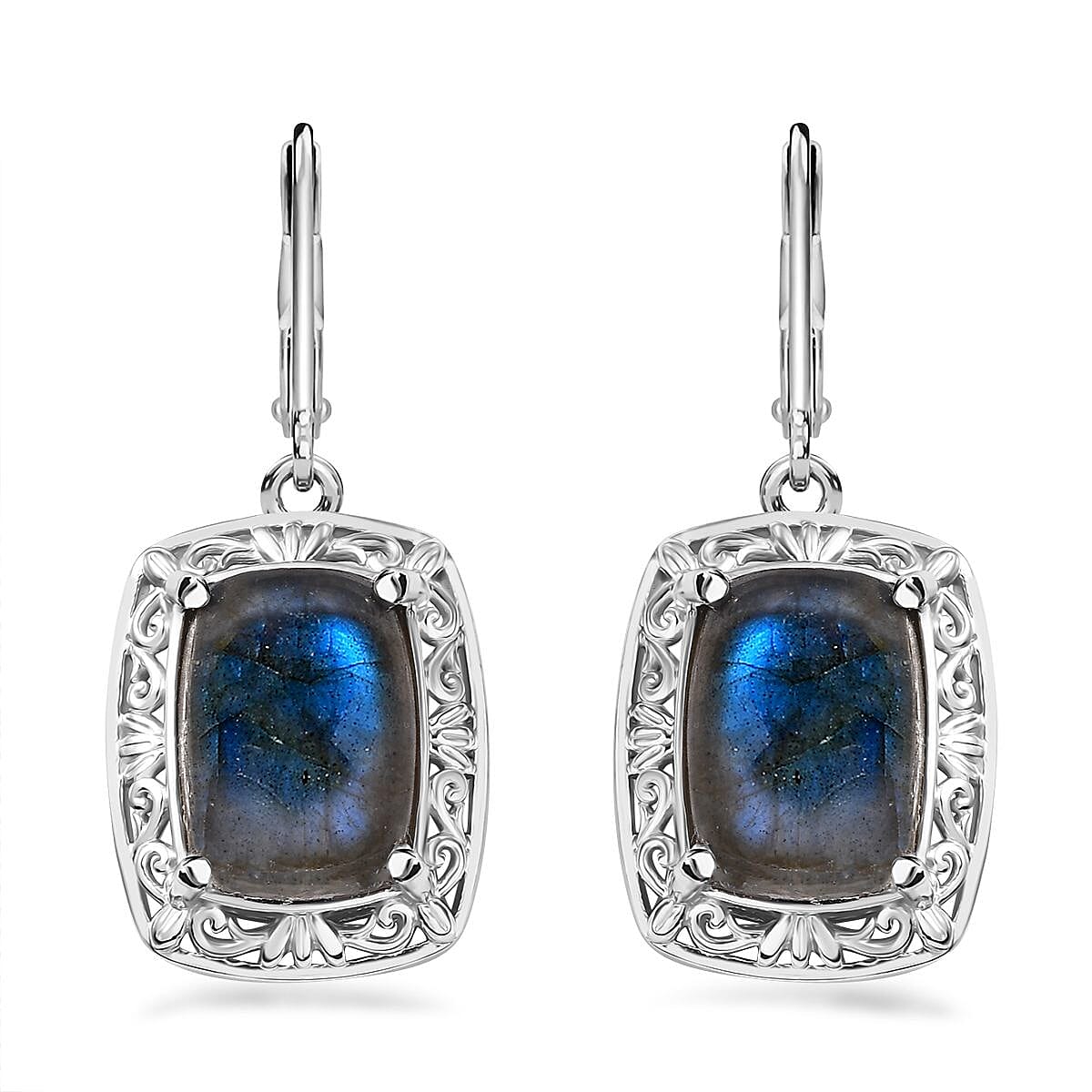 EverTrue Malagasy Labradorite 13.60 ctw Solitaire Lever Back Earrings in Platinum Over Copper with Magnet