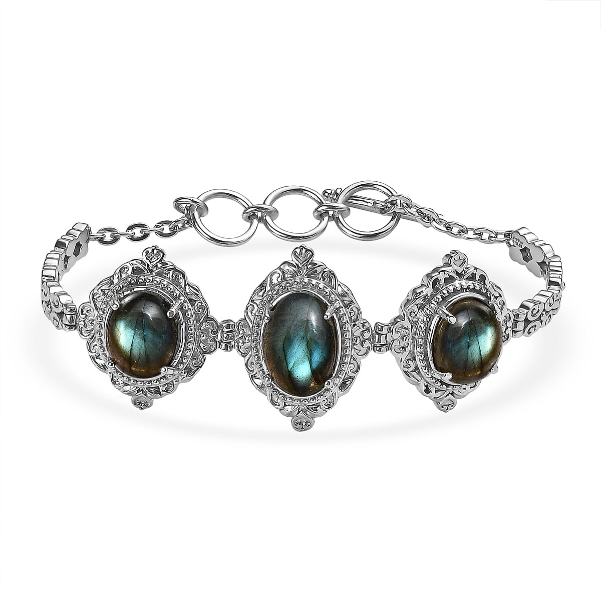 EverTrue Malagasy Labradorite 18.30 ctw Motif Linked Bracelet in Stainless Steel (7.00 In)