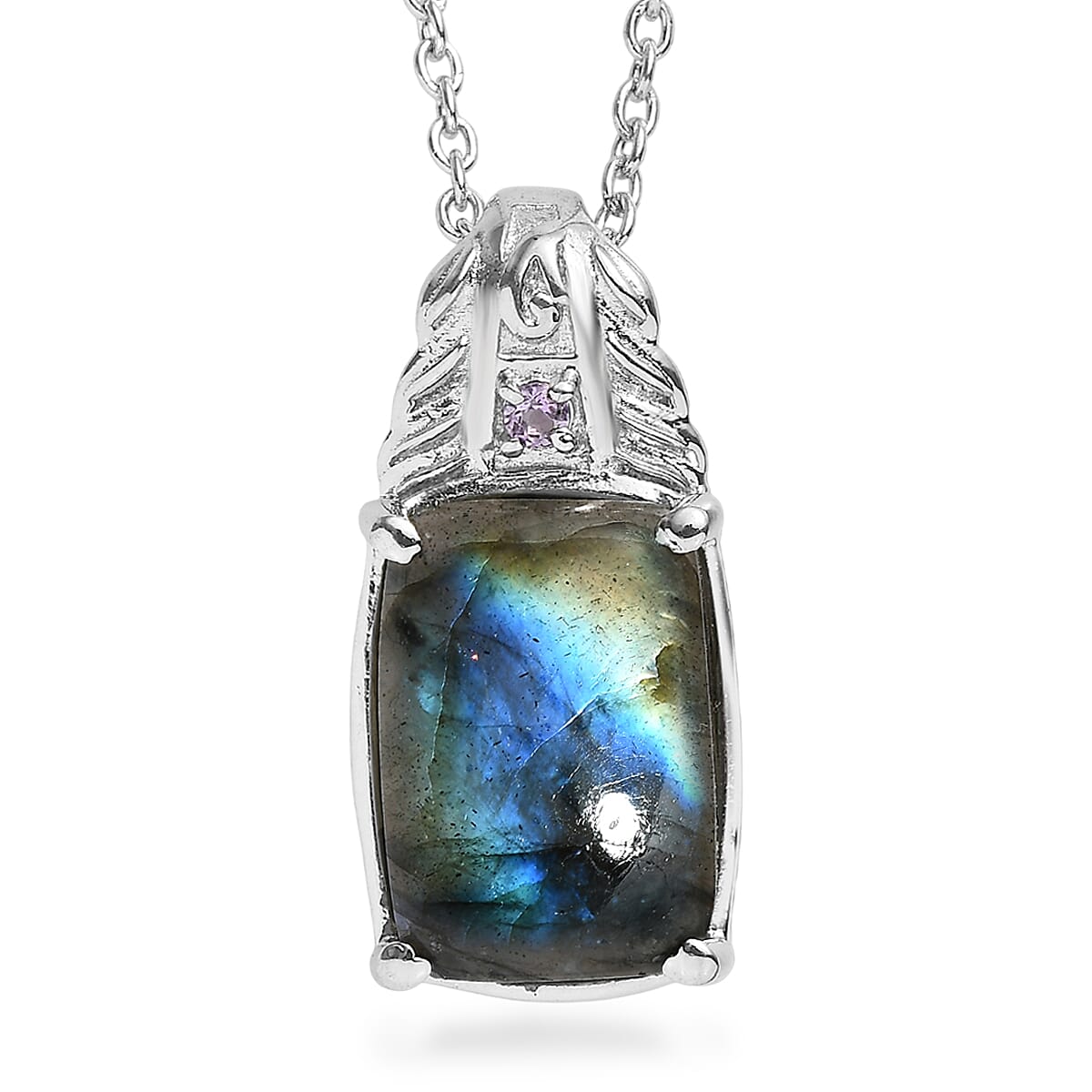 EverTrue Malagasy Labradorite and African Amethyst 7.15 ctw Pendant Necklace in Stainless Steel 20 Inches
