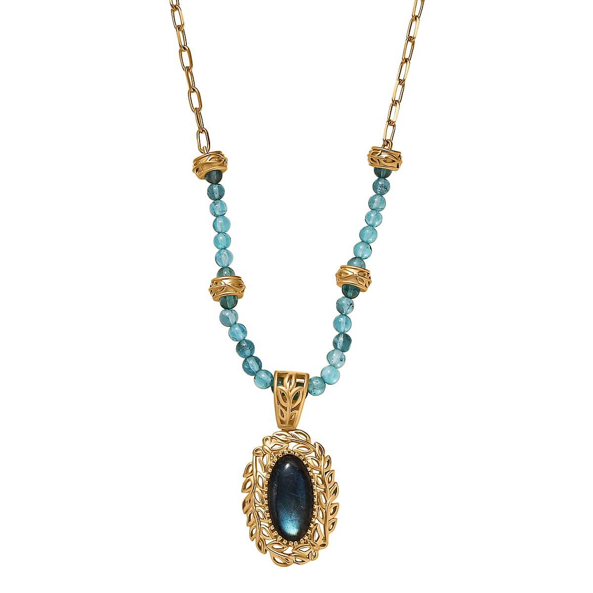 EverTrue Malagasy Labradorite and Apatite 22.00 ctw Tropical Forest Necklace in 18K YG Plated 18 Inches