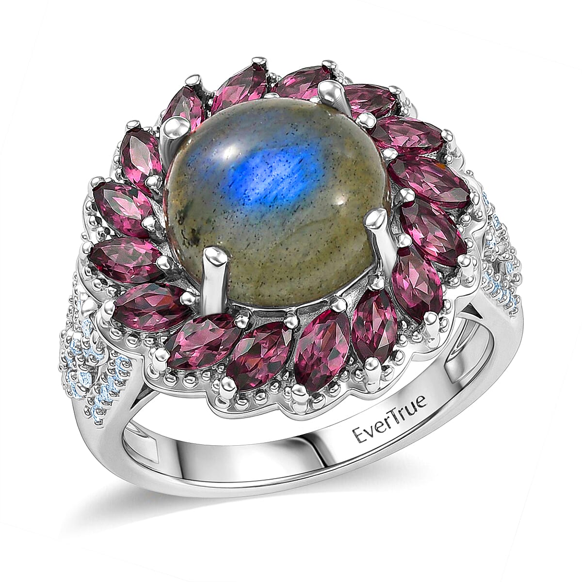Shine brilliantly with this EverTrue Malagasy labradorite ring in durable metal. The dark gray stones paired with purplish red garnet create an elegant contrast. This unique multi-gemstone ring becomes your signature statement for memorable occasions.