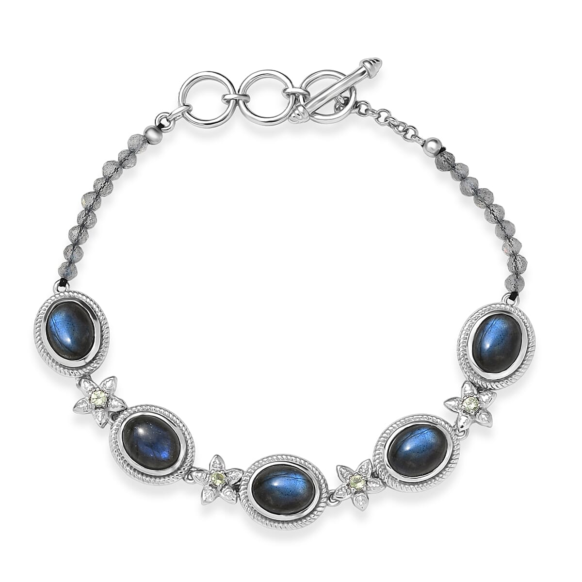 EverTrue Malagasy Labradorite and Peridot 36.90 ctw Bracelet in Platinum Bond (7.25 In)