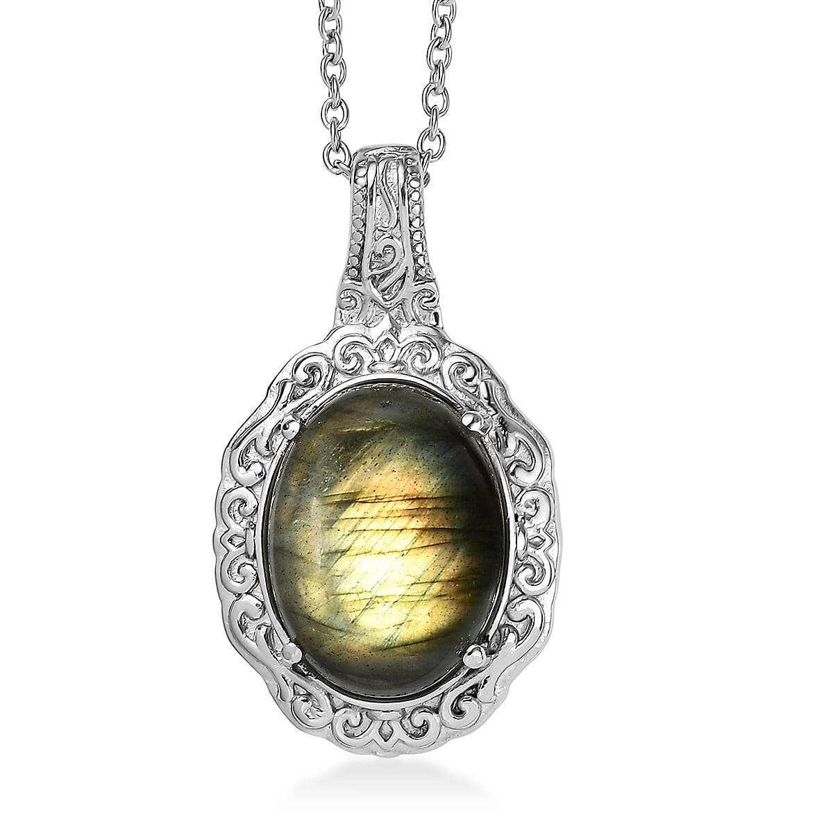 EverTrue Malagasy Labradorite Pendant Necklace (20 Inches) in Stainless Steel 10.30 ctw