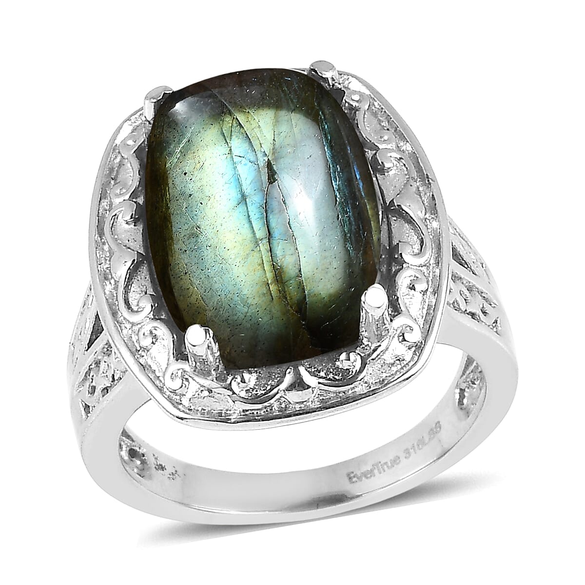 EverTrue Malagasy Labradorite Ring in Stainless Steel (Size 10.0) 12.75 ctw
