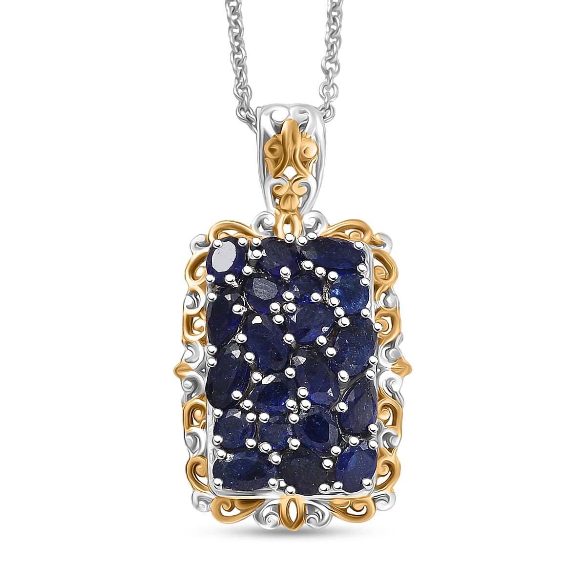 EverTrue Masoala Sapphire (D) 5.85 ctw Victorian Filigree Pendant in 18K YG Plated and Platinum Bond with Stainless Steel Necklace (20 Inches)