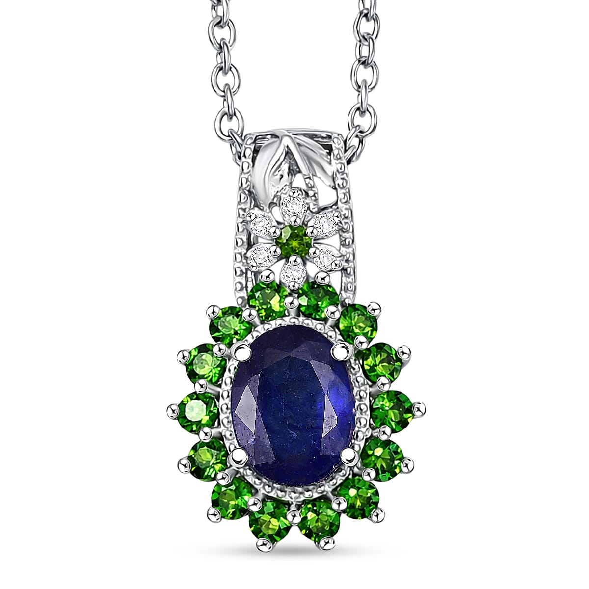 EverTrue Masoala Sapphire (D) and Multi Gemstone 2.50 ctw Pendant in Platinum Bond with Stainless Steel Necklace (20 Inches)