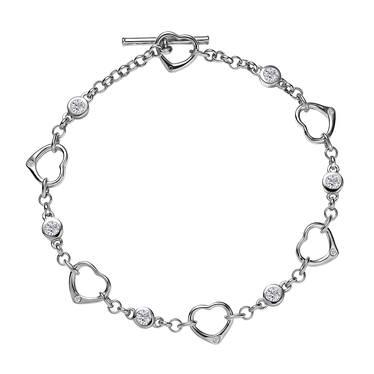 EverTrue Moissanite 0.65 ctw Forever Linked Hearts Bracelet in Platinum Bond (6.50 In)