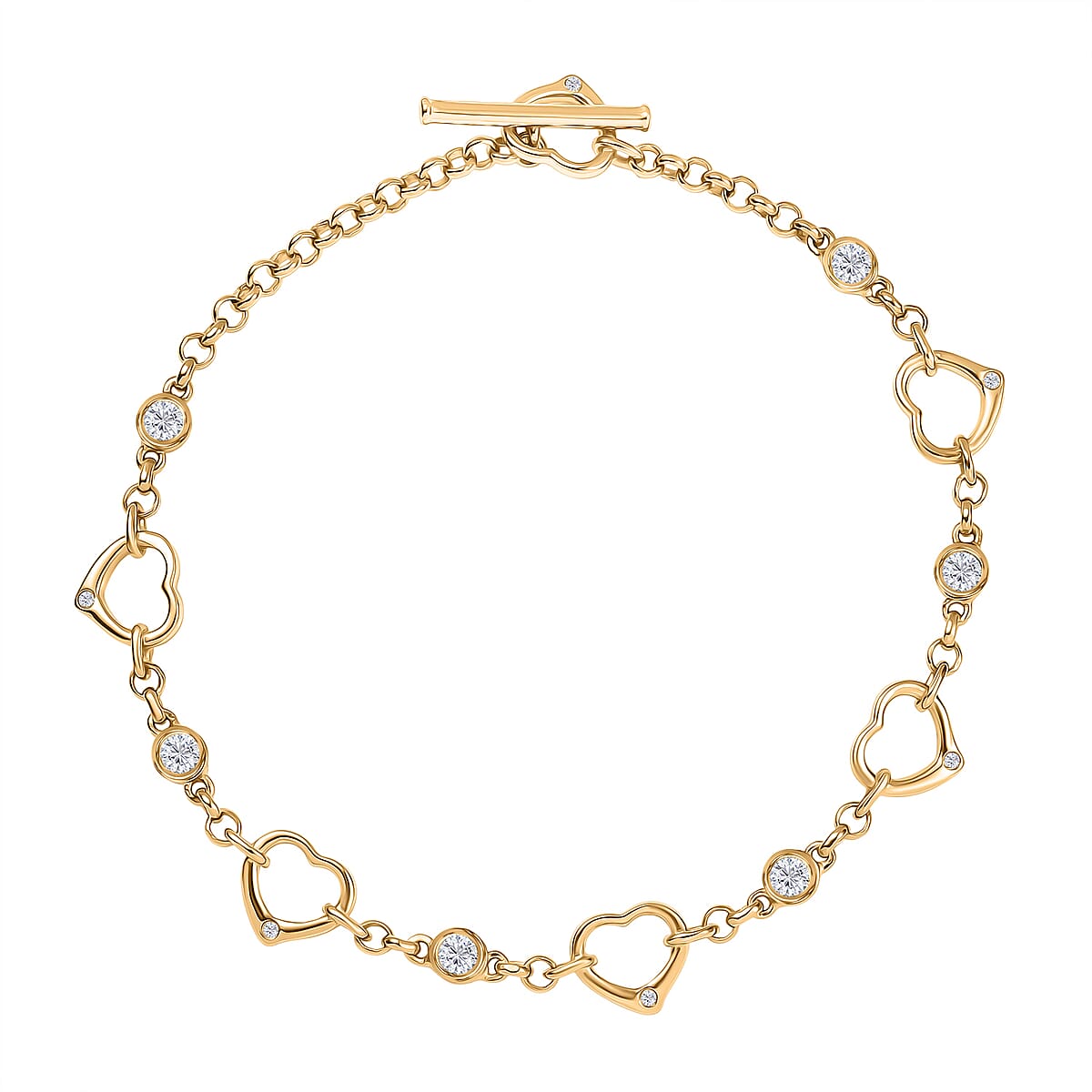 EverTrue Moissanite 0.75 ctw Forever Linked Hearts Bracelet in 18K YG Plated (8.00 In)