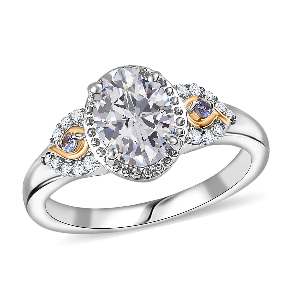 Cherish your love story with this EverTrue moissanite ring in durable metal. The brilliant oval moissanite paired with violet blue tanzanite creates captivating beauty. You'll love how this woman’s ring honors your deep, meaningful connection.