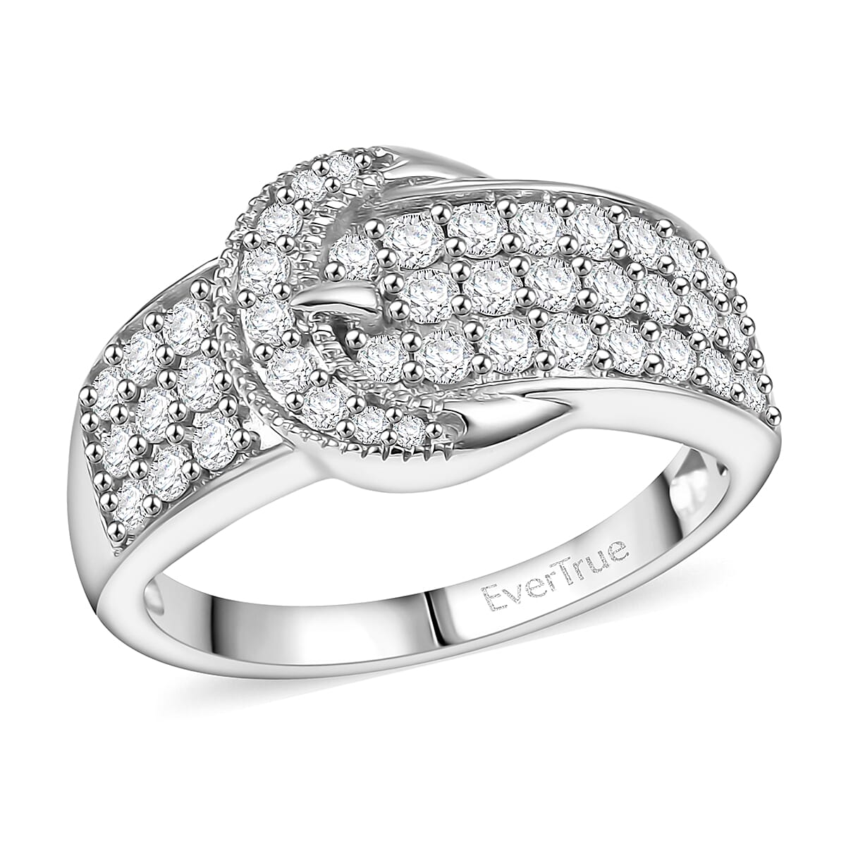 Dazzle admirers with this EverTrue moissanite ring in durable metal. This elegant buckle ring showcases brilliant stones that catch light beautifully. This durable ring’s sparkling design creates an impression of luxury and refined taste.