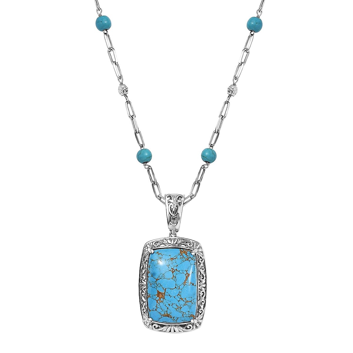 EverTrue Mojave Blue Turquoise 40.20 ctw Necklace in Platinum Over Copper with Magnet 18-20 Inches