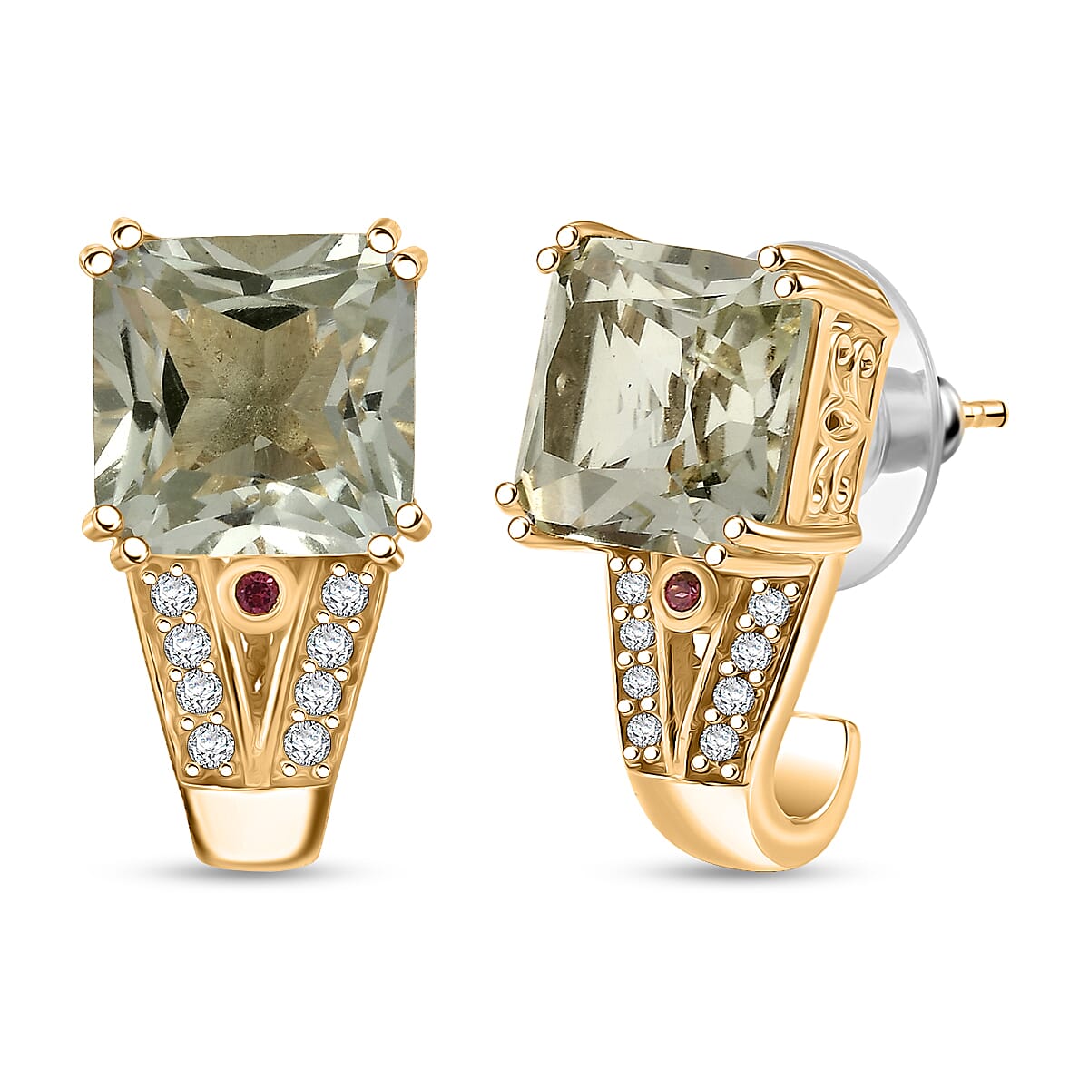 EverTrue Montezuma Prasiolite and Multi Gemstone 10.50 ctw Regal Majesty Earrings in 18K YG Plated
