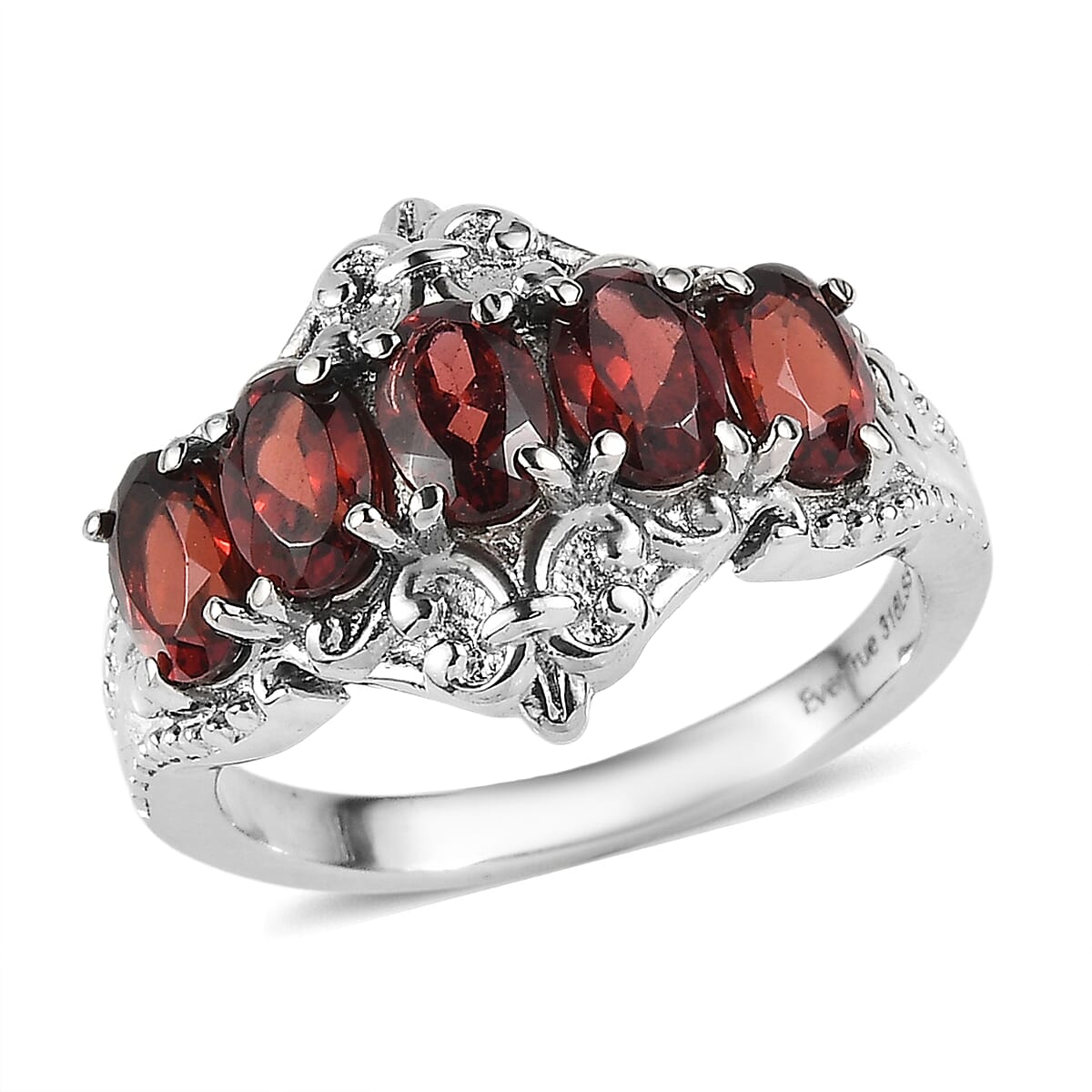 EverTrue Mozambique Garnet 3.00 ctw 5 Stone Ring in Stainless Steel (Size 6.0)