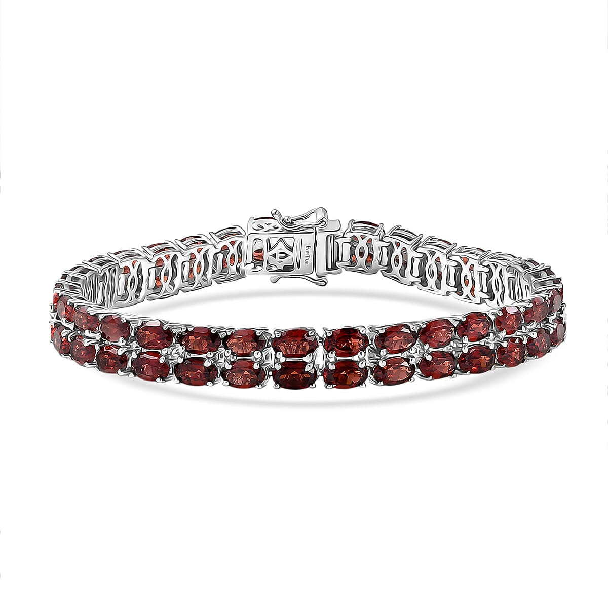 EverTrue Mozambique Garnet 36.35 ctw Two Row Carpet Bracelet in Platinum Bond (8.00 In)