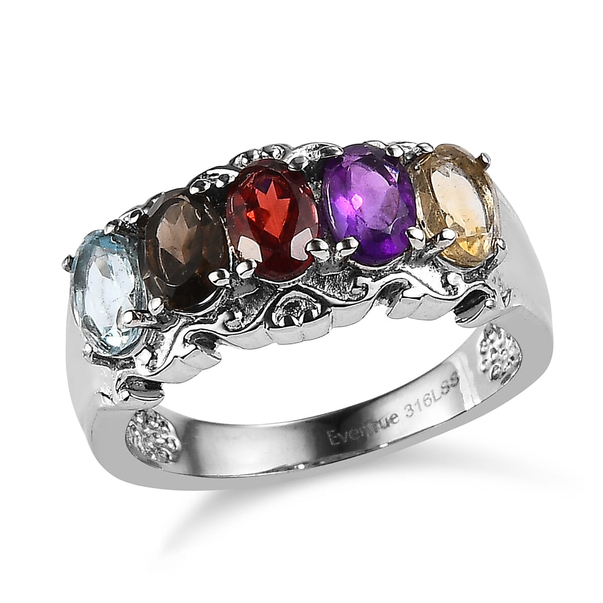 EverTrue Multi gemstone 2.60 ctw 5 Stone Ring in Stainless Steel (Size 8.0)
