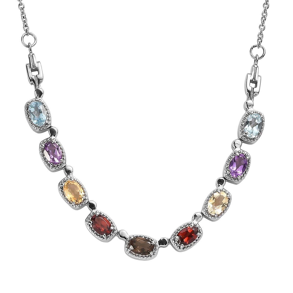EverTrue Multi Gemstone 4.50 ctw Necklace 18 Inches in Stainless Steel