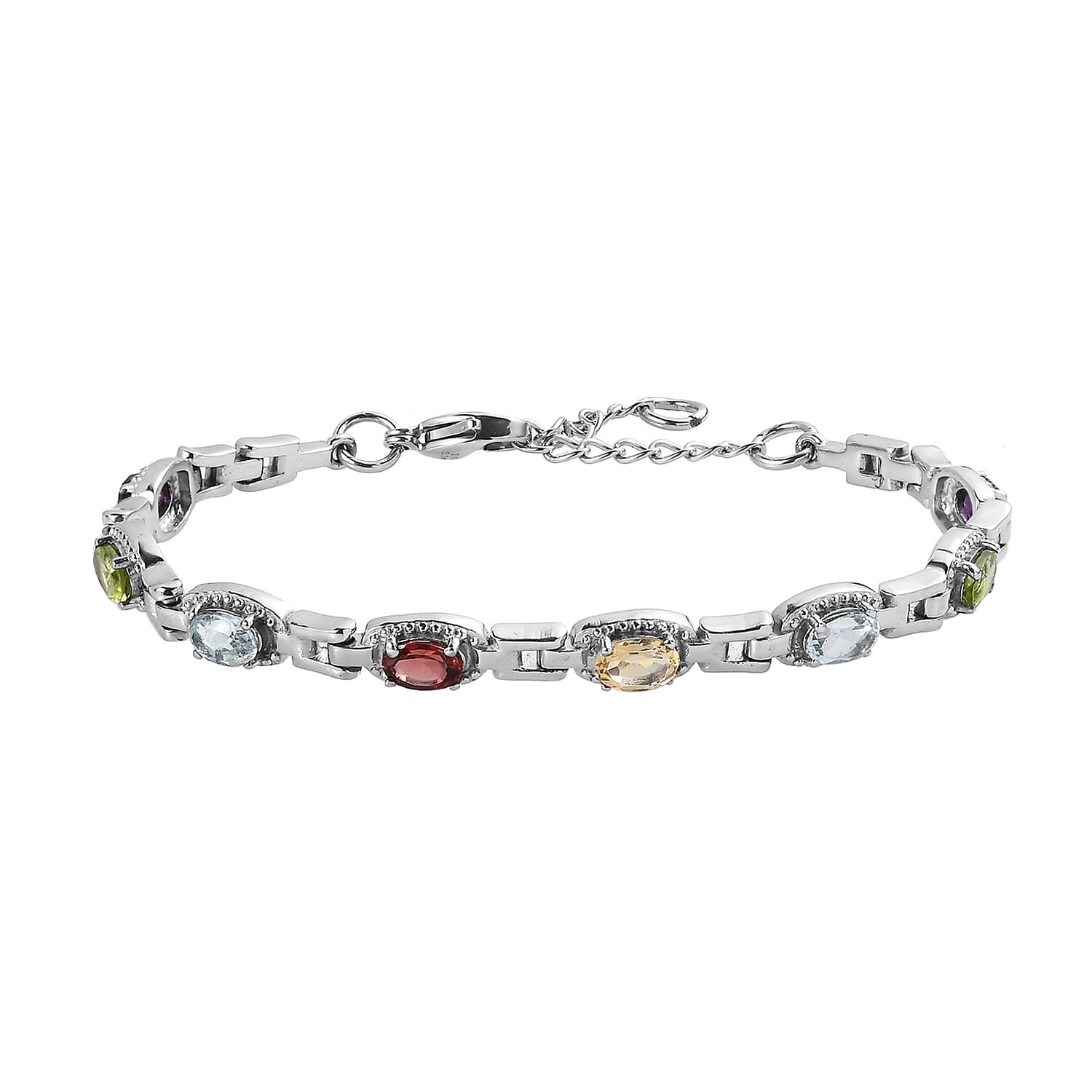EverTrue Multi Gemstone 4.80 ctw Link Bracelet in Stainless Steel (6.50-8.0In)
