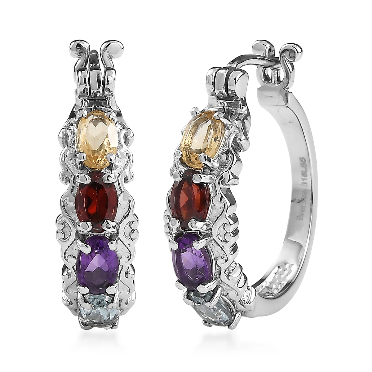 EverTrue Multi Gemstone Hoop Earrings in Stainless Steel 4.31 ctw