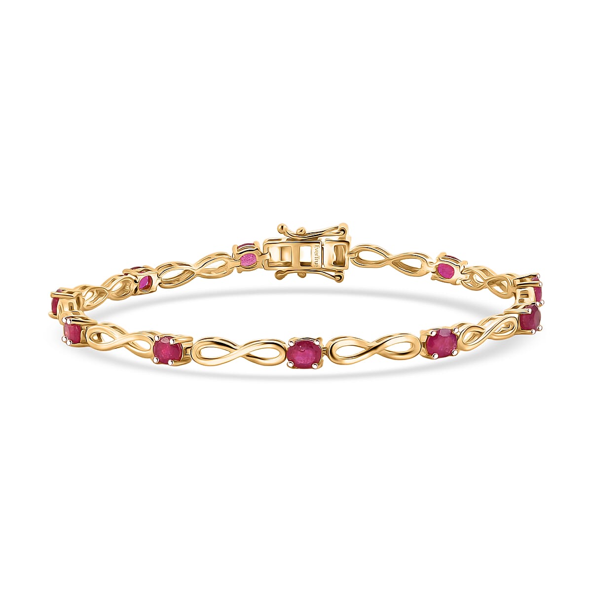 EverTrue Niassa Ruby (FF) 5.50 ctw Infinity Line Bracelet in 18K Yellow Gold Plated (8.00 In)