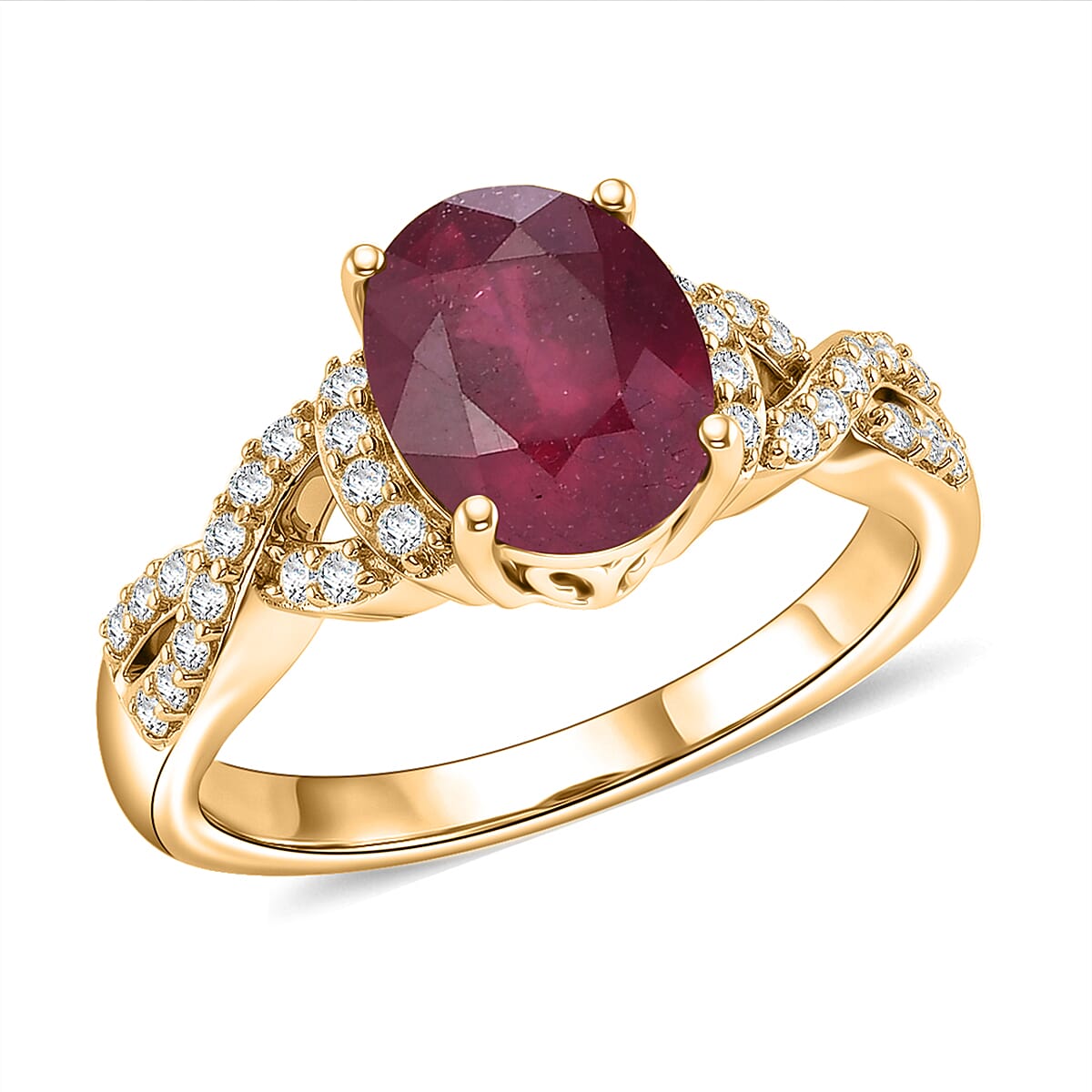 EverTrue Niassa Ruby (FF) and White Zircon 3.10 ctw Royal Infinity Ring in 18K Yellow Gold Plated (Size 7.0)