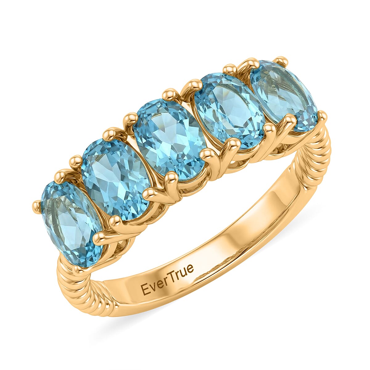 EverTrue Paraiba Apatite 2.30 ctw 5 Stone Ring in 18K YG Plated (Size 10.0)