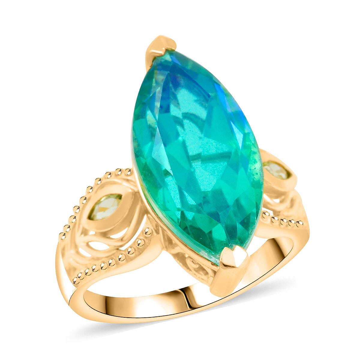 EverTrue Peacock Quartz (Triplet) and Peridot 8.50 ctw Peacock Feather Ring 18K YG Plated (Size 8.0)