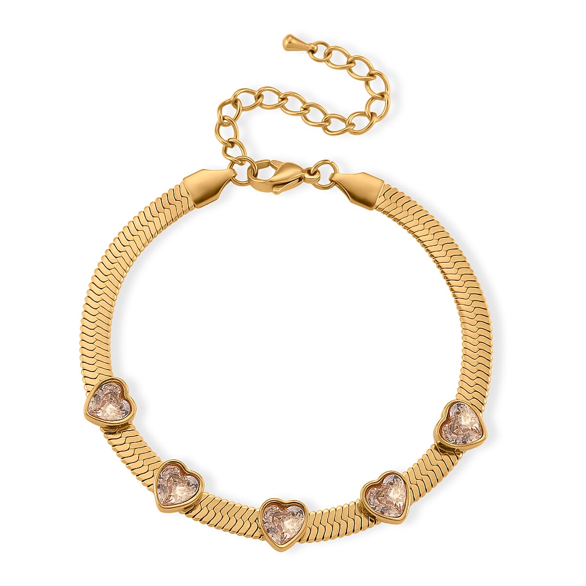 EverTrue Quintessence of Love Champagne Austrian Crystal Bracelet in ION Plated YG Stainless Steel (7.50-9.0In)