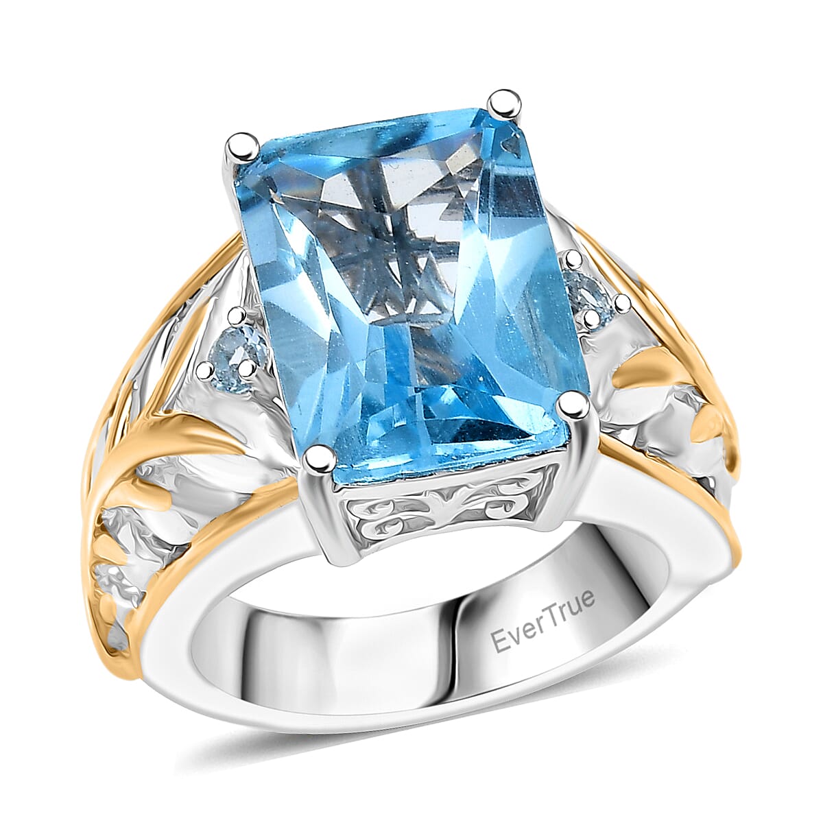 EverTrue Radiant Cut Sky Blue Topaz 8.25 ctw Ring in 18K YG Plated and Platinum Bond (Size 10.0)