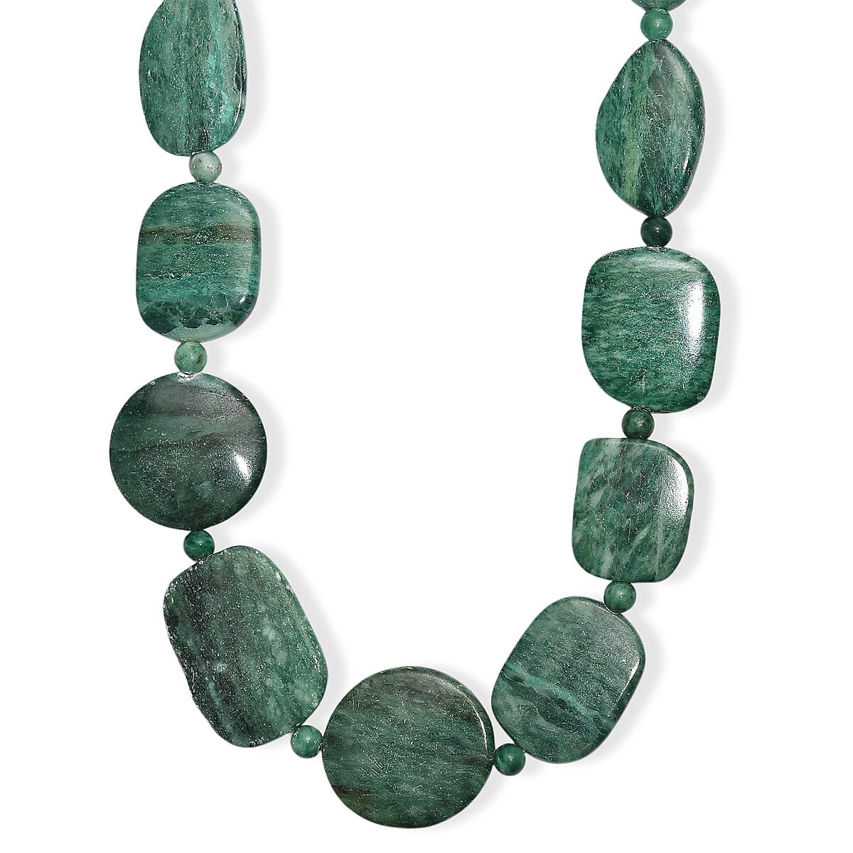 EverTrue Rainforest Jasper and Green Jasper 910.00 ctw Beaded Necklace in Platinum Over 20 Inches