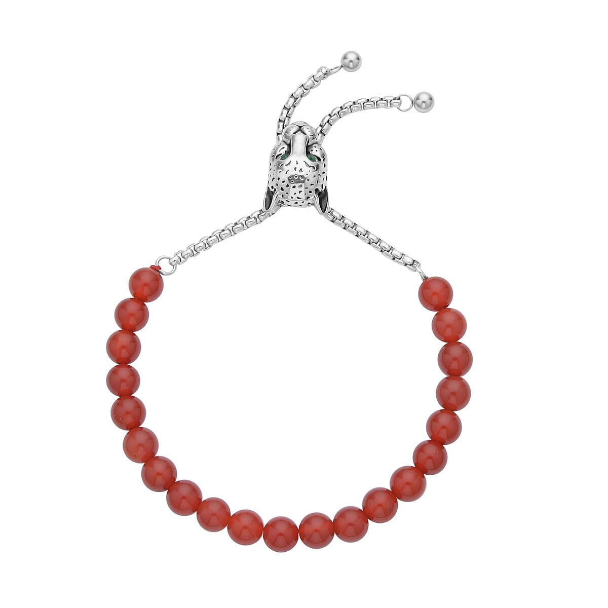 EverTrue Red Agate, Neon Green Austrian Crystal Bolo Bracelet with Panther Motif Slider Lock in Black Oxidized Stainless Steel (6-9In) 30.00 ctw , Tarnish-Free, Waterproof, Sweat Proof Jewelry
