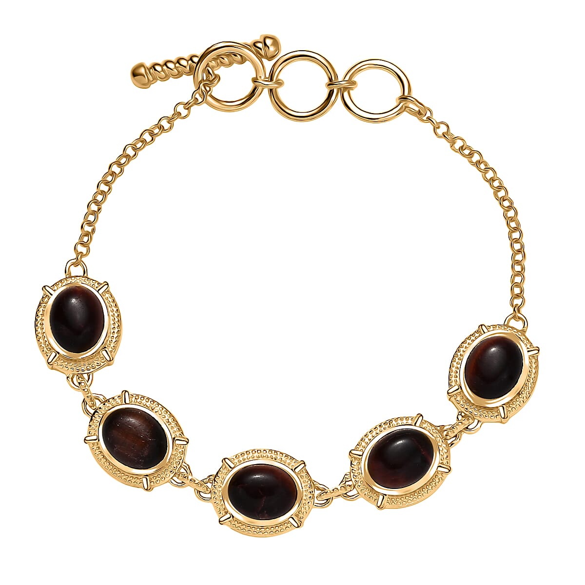 Refine your style with this EverTrue red tiger eye bracelet in durable metal. This elegant fashion bracelet features red tiger eye for warm tones and natural, eye-catching depth. Finished in 18K yellow gold plating, it offers lasting shine and everyday sophistication.