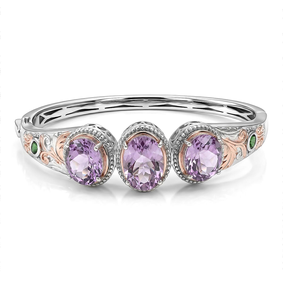 EverTrue Rose De France Amethyst and Chrome Diopside 14 ctw Regal Trinity Bangle Bracelet in 18K RG Plated and Platinum Bond (6.50 In)