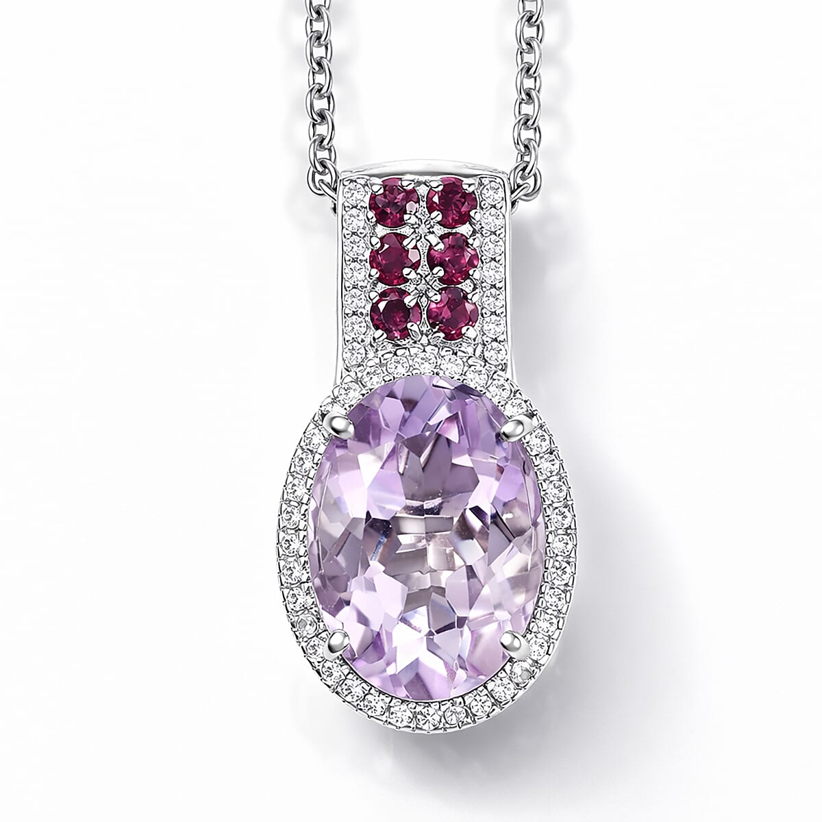 EverTrue Rose De France Amethyst and Multi Gemstone 5.60 ctw Imperial Majesty Pendant in Platinum Bond with Stainless Steel Necklace 20 Inches
