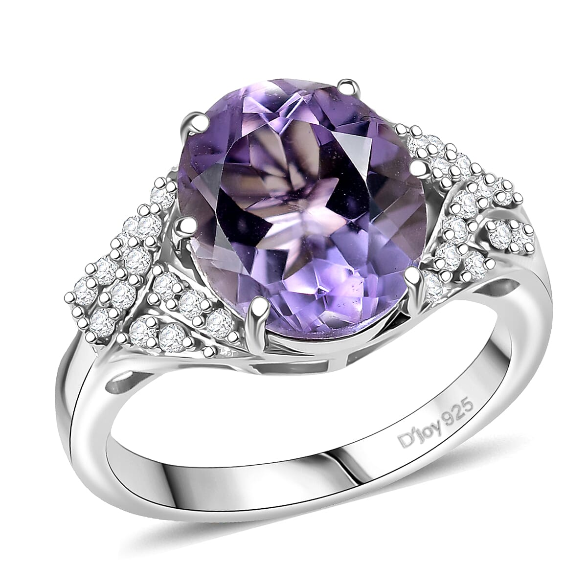 EverTrue Rose De France Amethyst and White Zircon 4.75 ctw Lavender Cocktail Ring in Platinum Bond (Size 9.0)