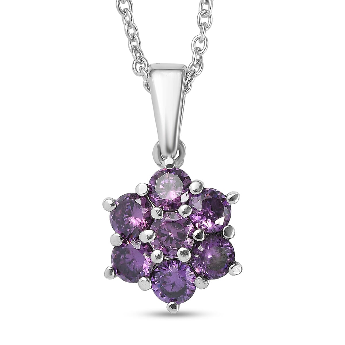 EverTrue Simulated Amethyst Color Diamond 2.90 ctw Pendant Necklace in Stainless Steel (20 Inches)