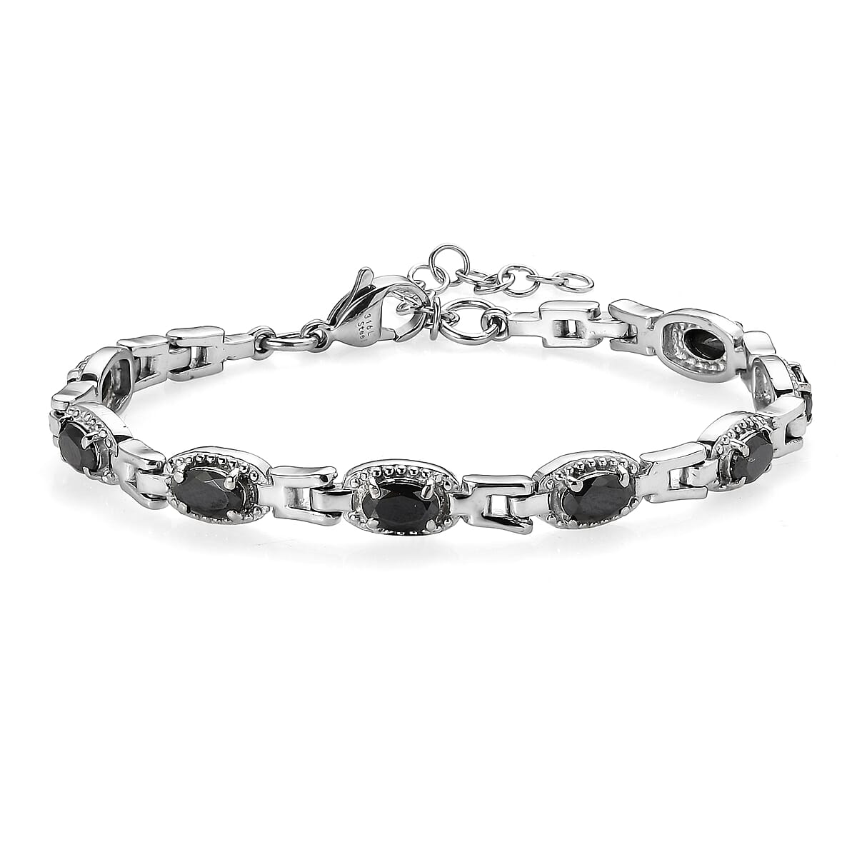 EverTrue Simulated Black Diamond Bracelet in Stainless Steel (6.50 In)