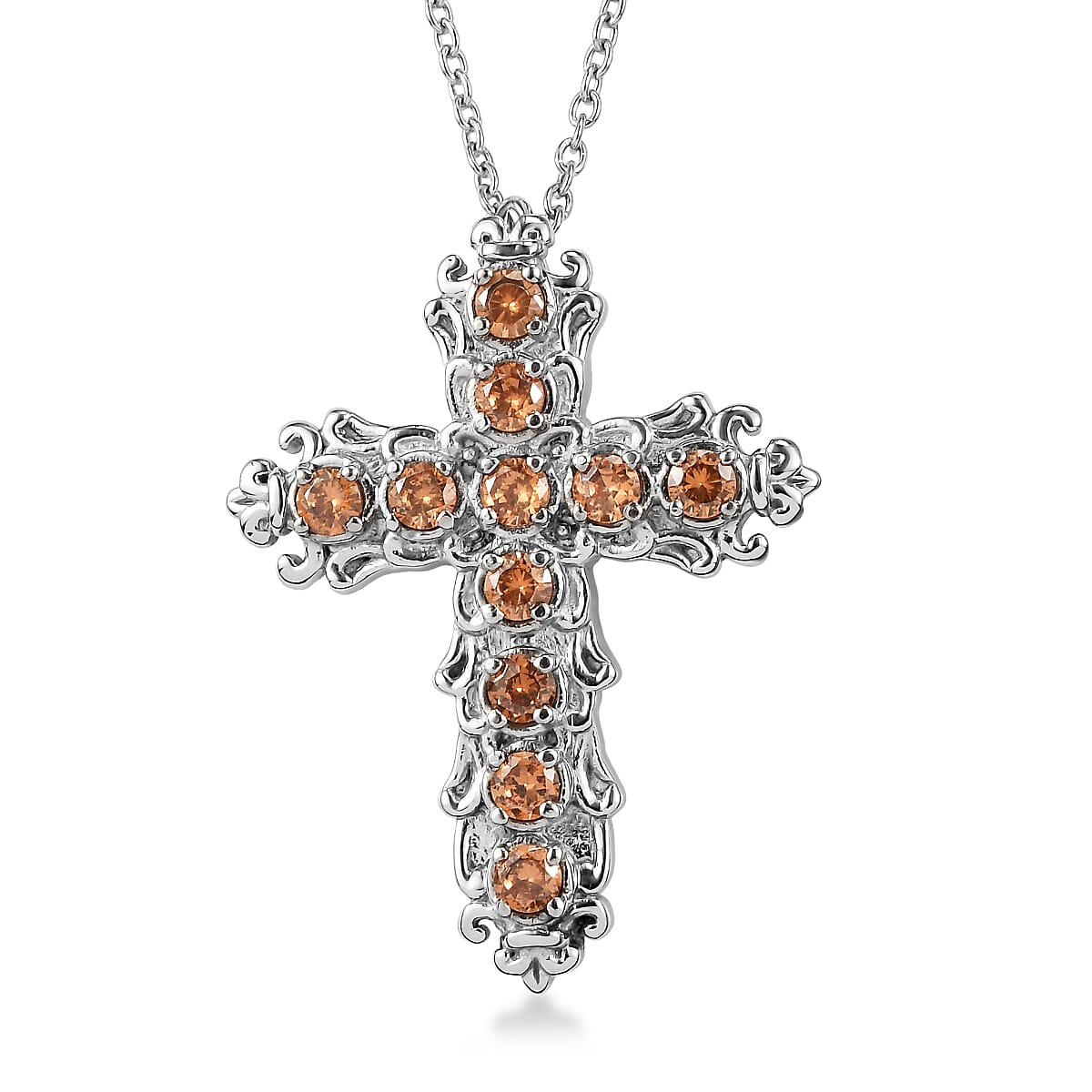 EverTrue Simulated Champagne Diamond Pendant Necklace in Stainless Steel 20 Inches