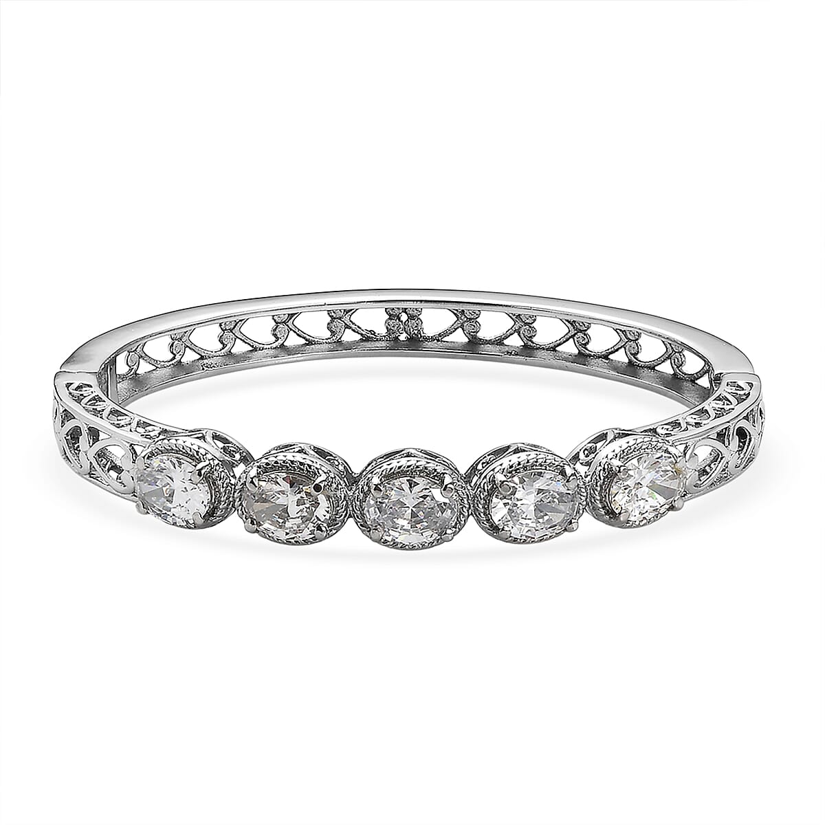 EverTrue Simulated Diamond Bangle Bracelet in Stainless Steel (8.0 In)