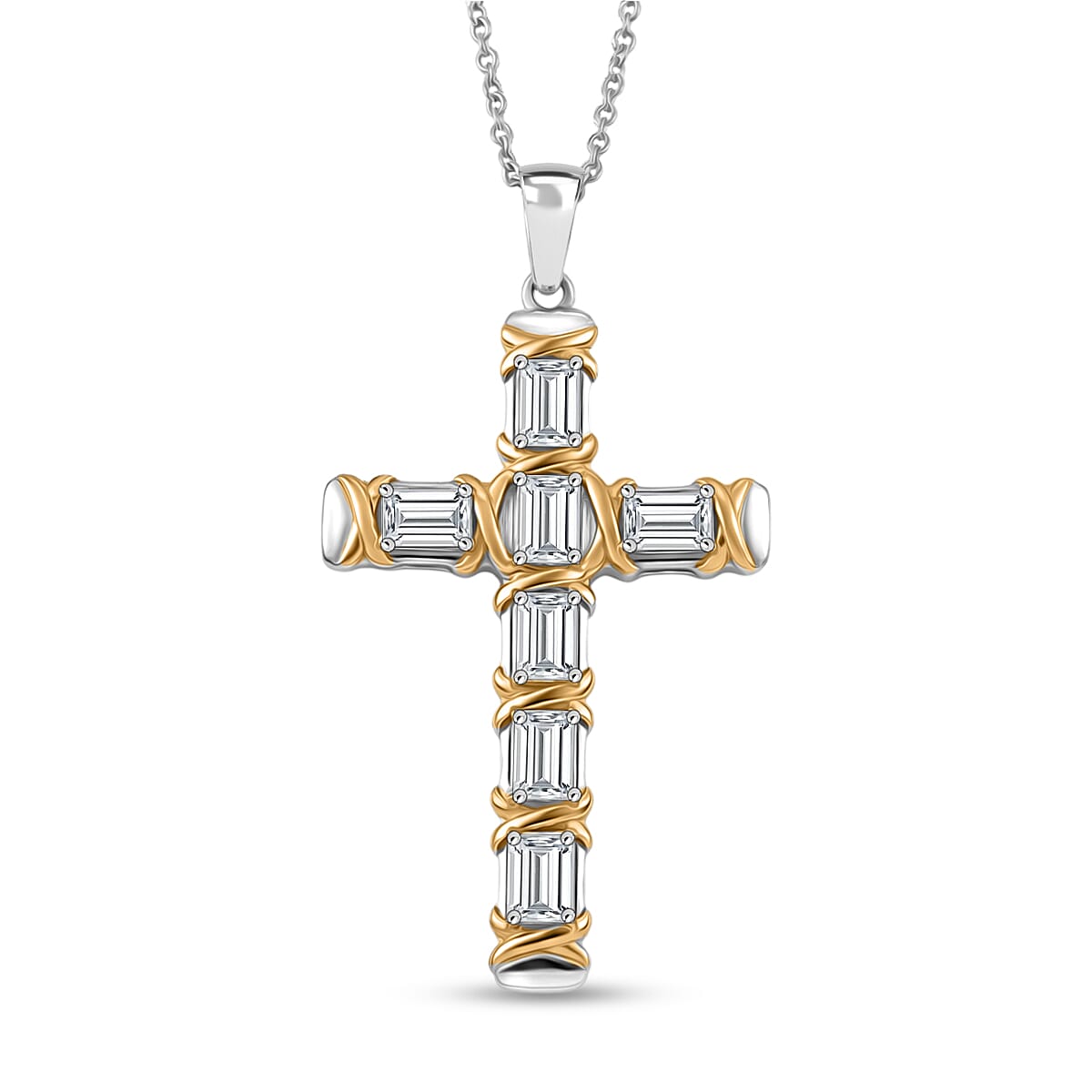 EverTrue Simulated Diamond Pendant in 18K YG Plated and Platinum Bond with Stainless Steel Necklace 20 Inches