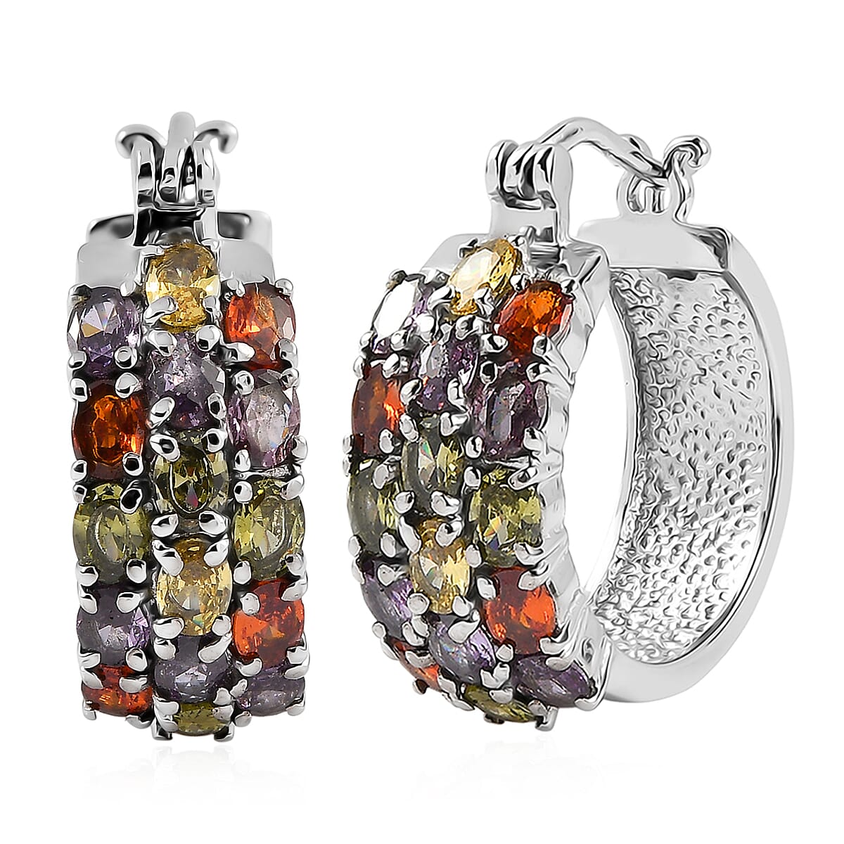 EverTrue Simulated Multi Diamond Hoop Earrings in Stainless Steel