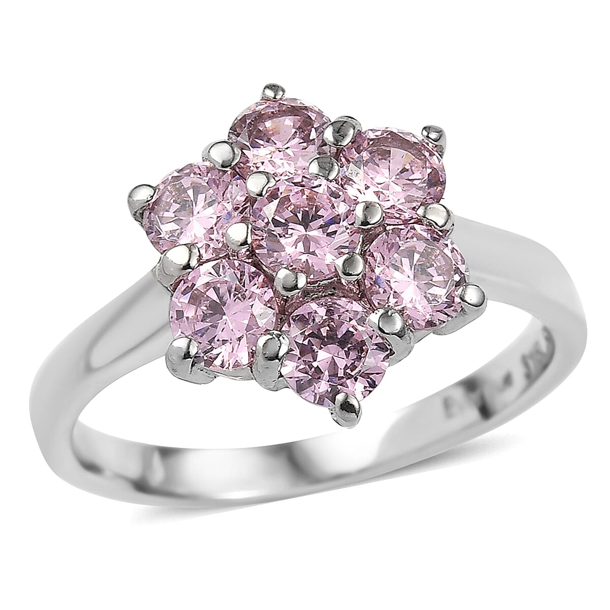 EverTrue Simulated Pink Diamond 3.35 ctw Floral Ring in Stainless Steel (Size 10)