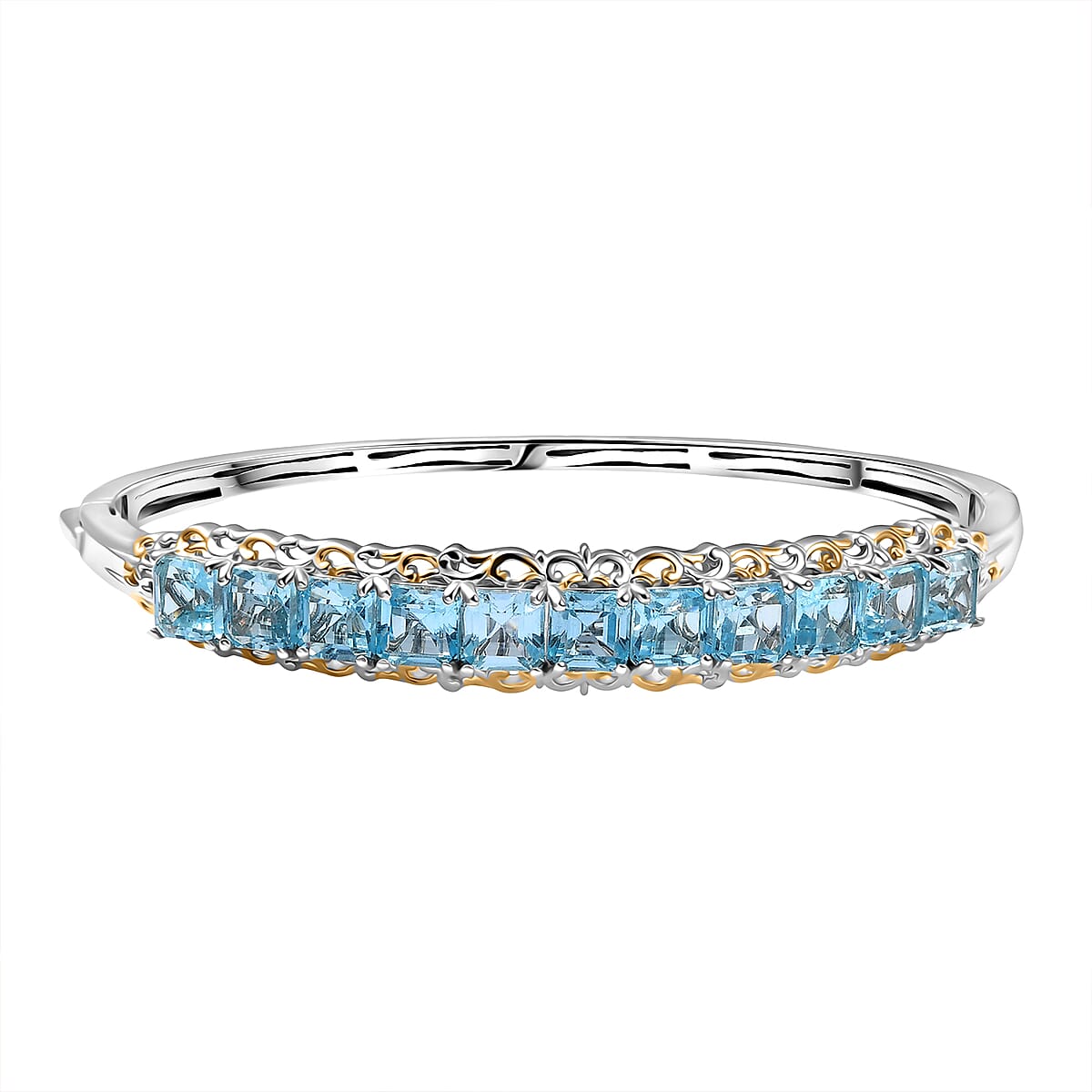 EverTrue Sky Blue Topaz 15.90 ctw Bangle Bracelet in 18K YG Plated and Platinum Bond (7.25 In)