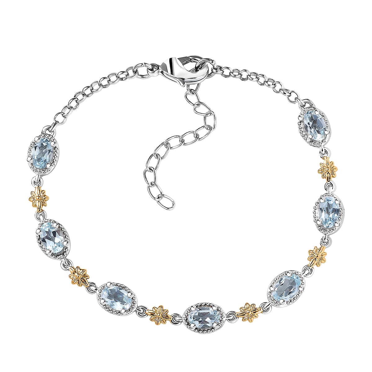EverTrue Sky Blue Topaz 3.90 ctw Bracelet 18K YG Plated and Platinum Bond (6.5-8.00In)