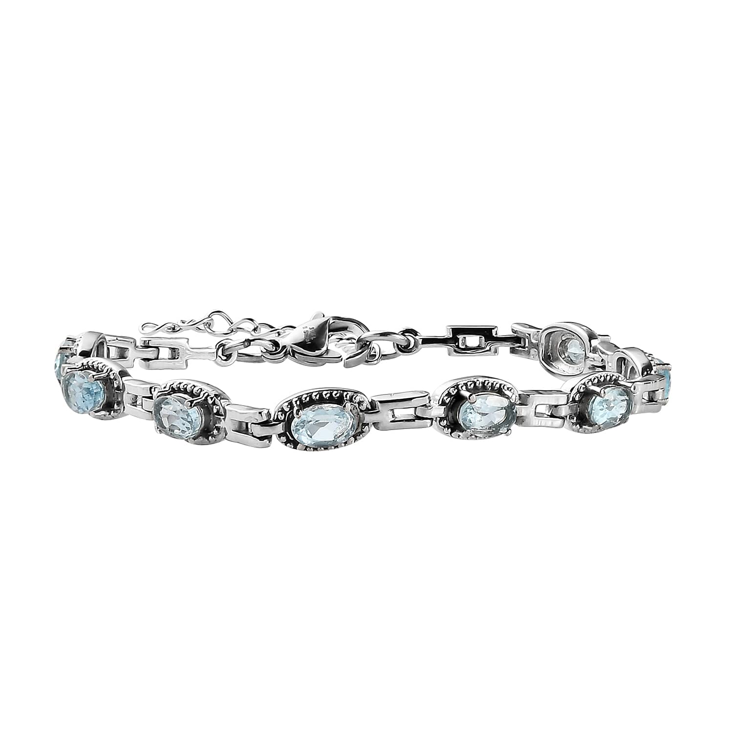 EverTrue Sky Blue Topaz 4.80 ctw Link Bracelet in Stainless Steel (6.50-8.0In)