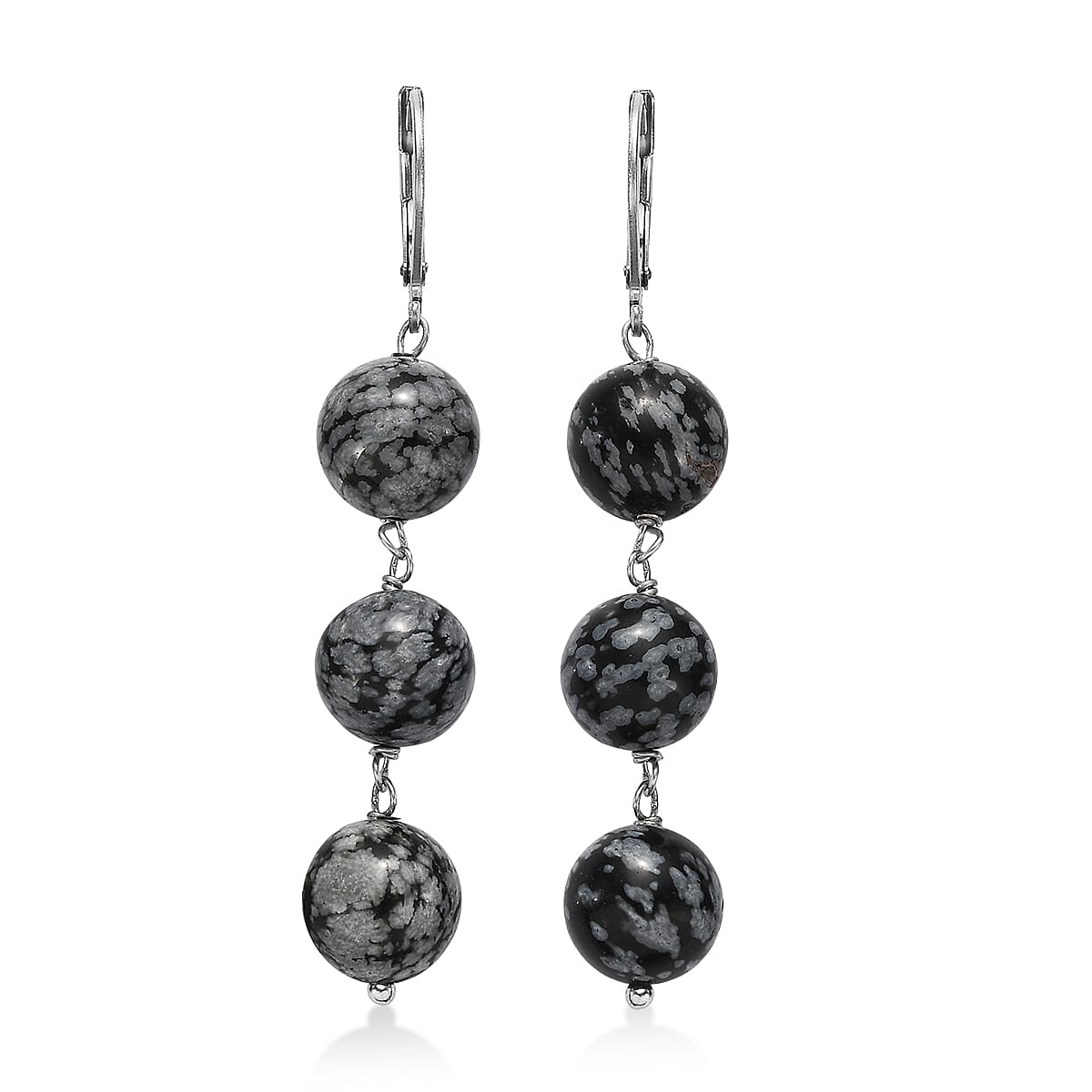 EverTrue Snow Flake Obsidian 40.00 ctw Earrings in Stainless Steel