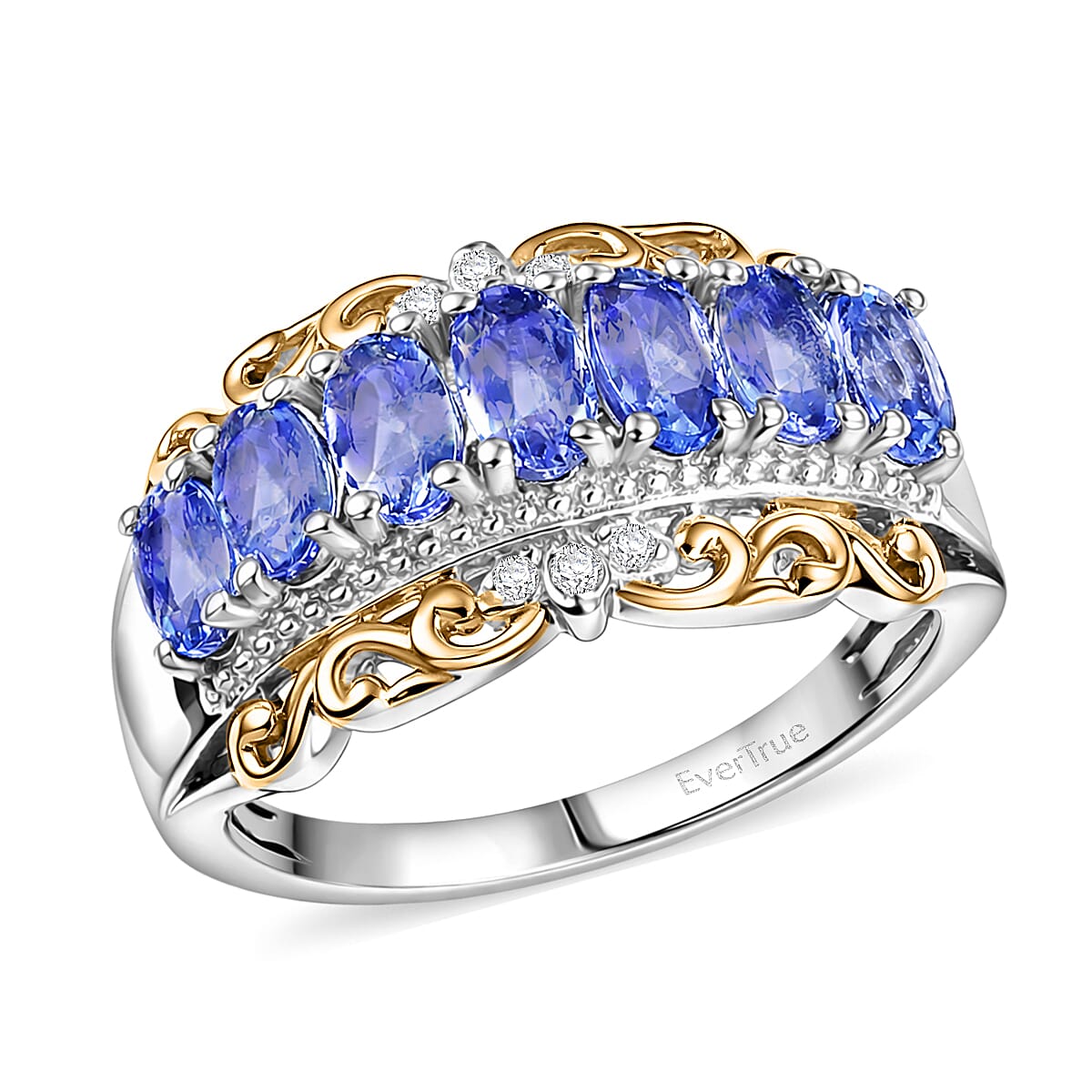 EverTrue Tanzanite and White Zircon 1.65 ctw Royal Band Ring in 18K YG Plated and Platinum Bond (Size 7.0)