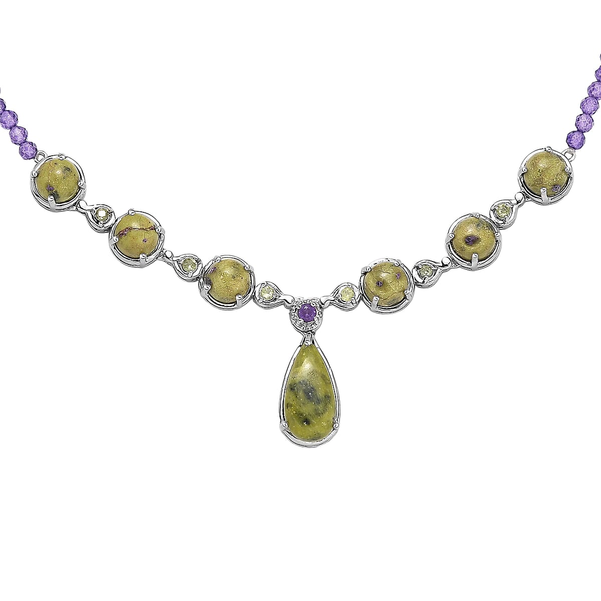 EverTrue Tasmanian Stichtite and Multi Gemstone 35.25 ctw Earthborn Celestial Orbit Elegance Necklace in Platinum Bond 18-20 Inches (Del. in 8-10 Days)
